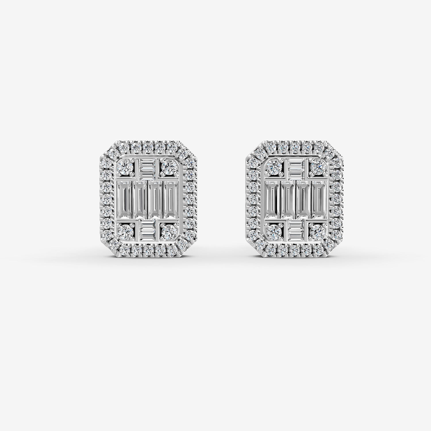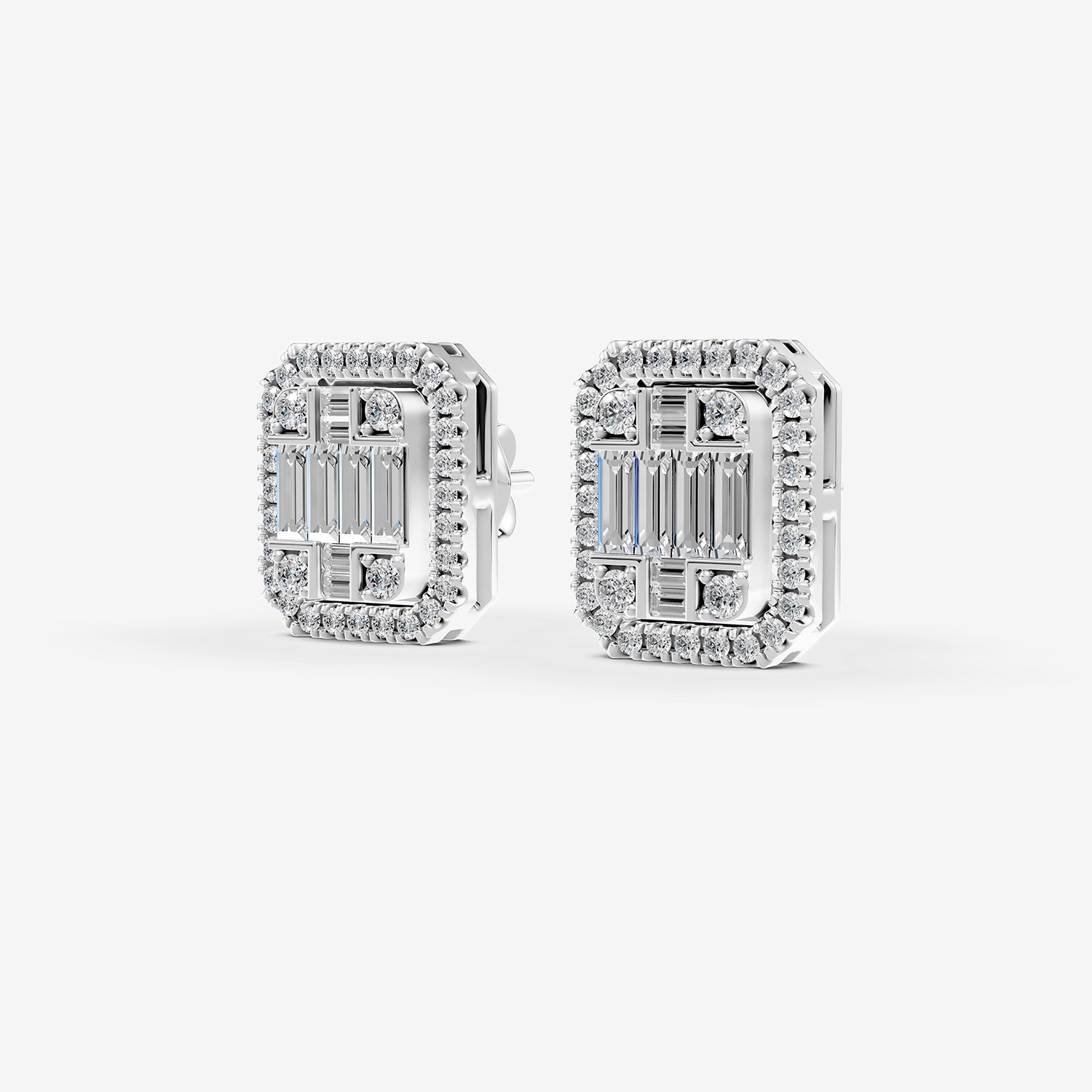 These classic diamond earrings from Liali are in 18 carat white gold and are shaped in the emerald-cut diamond.
