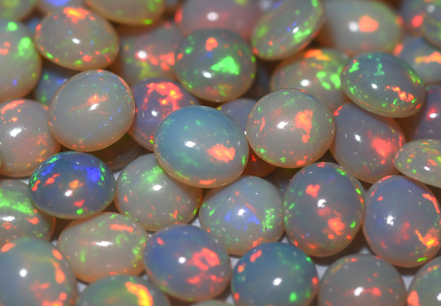 Opal The mesmerizing Opal displays a unique play-of-color, shimmering with a rainbow of hues against its base. Symbolizing emotion, creativity, and ever-changing beauty, this iridescent gemstone is truly unique, reflecting light in a dance of vibrant tones.