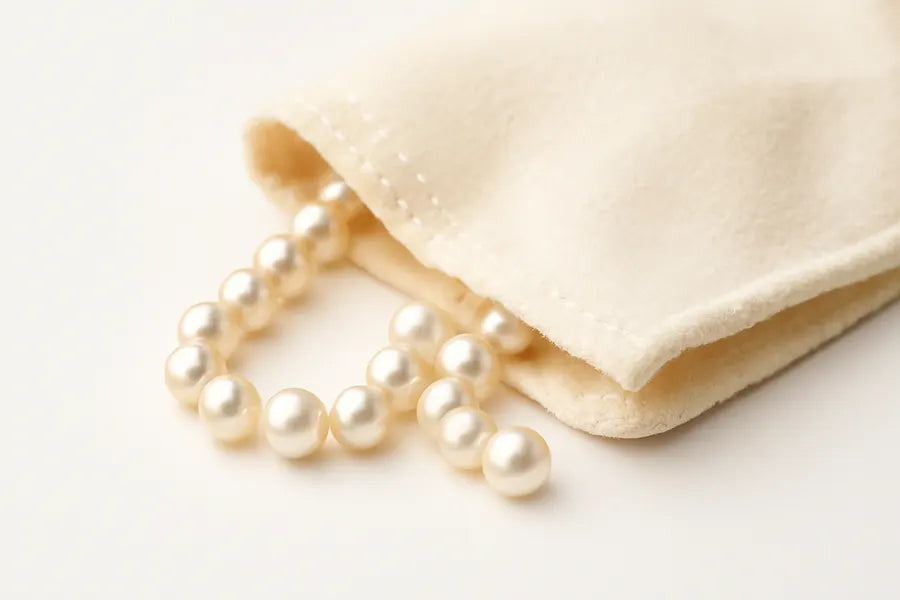 Always store your Pearls wrapped in a soft cloth or pouch and protected from all abrasive objects. Never store pearls in any type of plastic bag. Plastic can emit a chemical that will cause the surface of the Pearl to deteriorate. Never store your Pearls in a very dry room or in a safe deposit box for a long time, when worn regularly pearls improve their luster and glow.