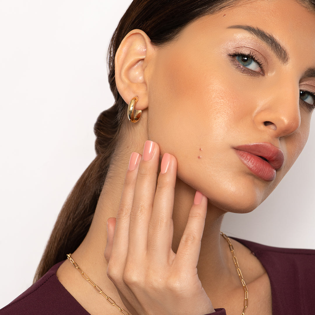 Ideal for everyday wear, adding a touch of polish to office attire, or complementing a relaxed weekend style, these versatile gold huggie earrings are a must-have for comfort and elegance. Their classic appeal and comfortable fit also make them an exceptionally thoughtful and cherished gift for any occasion.