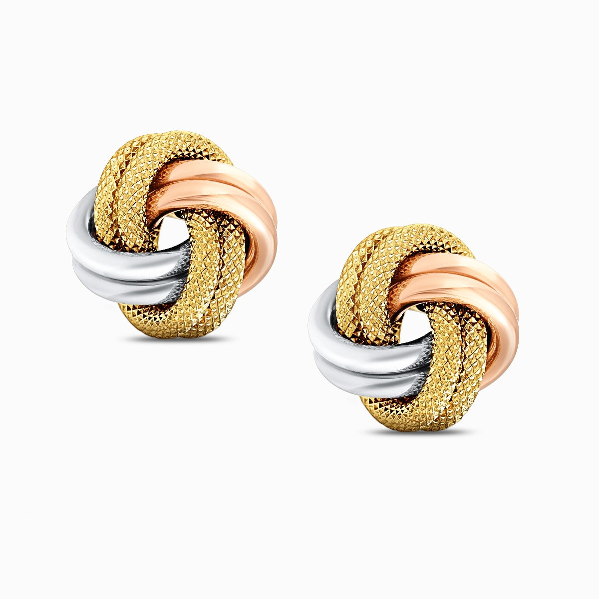 Tri-Color Textured Knot 18K Gold Stud Earrings - Large